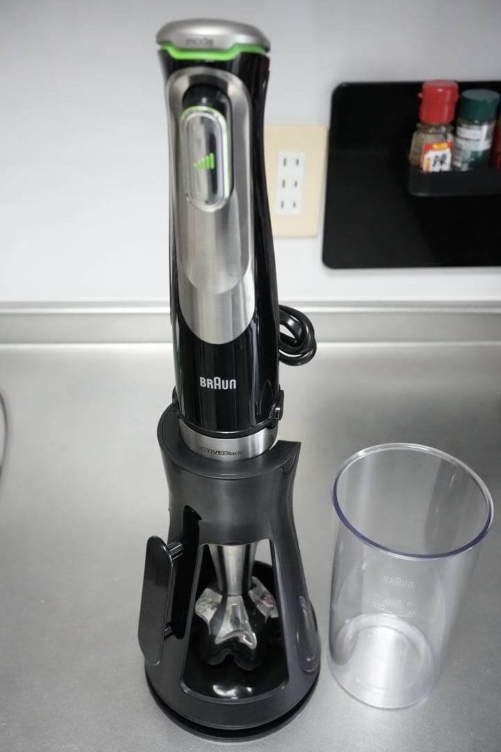 ご覧いただきありがとうございます。タッパーウェア バーミックスの出品です。数年前に購入し主に離乳食作りで使用していました。使用する機会もなくなり食器棚に保管したままになっていました。動作確認済みで簡易清掃はしてありますが、食品用ですので使用前に再度清掃をお願いいたします。写真の物が全てです。宜しくお願いいたします。| カテゴリー: | 生活家電・空調>>>キッチン家電>>>ジューサー・ミキサー・フードプロセッサー |
